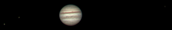 | Note: All jovian moons on the same field of view. From left to right, Calisto, Ganymede, Io and Europa Telescope: Celestron CPC 800 (8") Camera: Skyris 236M with Orion RGB filters Exposure: Stack of 3000 frames @ FPS (avg.)=54 Shutter=7.700ms Gain=217 (49%) Date: Mar 31st 2017 Time: 12:10 am Location: Campbell, CA |