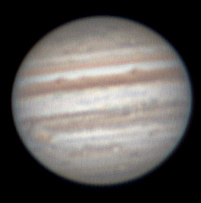 Notes: This is my best Jupiter image to date Telescope: Celestron CPC 800 (8") Barlow: Orion 2x Shorty Plus Camera: DMK 21AU04 with Orion RGB Filters Exposure: Stack of 442R @ 1/19s, 671G @ 1/30s, 622B @ 1/30s Pickering Seeing Rating: 6-7 Apparent Mag: -2.82 Distance: 4.0709 AU Date: 31st August 2009 Time: 11:53 am |