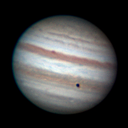 | Note: Animation of 4 frames taken about 5 minutes apart (pretty much back to back) to display the IO transit Telescope: Celestron CPC 800 (8") Camera: Skyris 236M with Orion RGB filters Exposure: Stack of 3000 frames @ FPS (avg.)=54 Shutter=16.000ms Gain=238 (49%) Date: Mar 1st 2017 Time: 1:48 am - 2:18 pm Location: Campbell, CA |